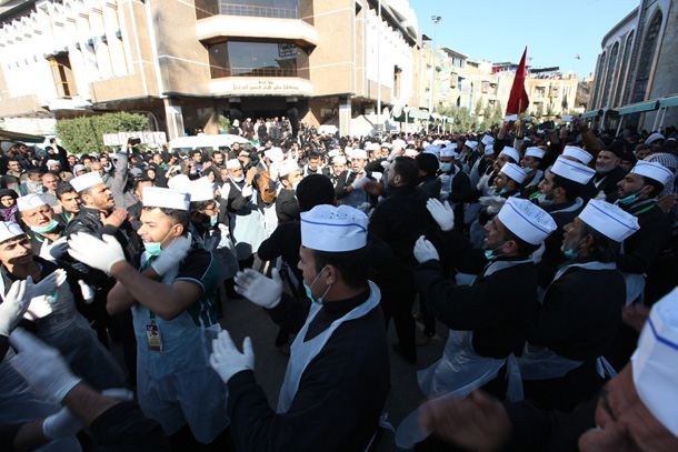گزارش تصویری | عزاداری هیئت مهمانسرای حرم مطهر پس از پایان وظایف اداری منبع: سایت آستان قدس حسینی