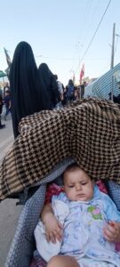 من در تمام سفرهایی که داشتم، مادرم، خواهرم و دیگر اقوام در این سفر بودند البته همراه ما نبودند ولی همزمان پیش میآمد که همدیگر را ببینیم اما واقعاً این سفرها را روی توان خودم حساب کرده بودم. سال 1398 با پسرم (محمد مهزیار) که تقریباً ۷ ماهه بود و همراه مادر همسرم و دوستم به این سفر رفتیم. دوستم هم یک دختر داشتند که آن موقع تقریباً دو سال و هفت ماهه بود. سالهای 1399 و 1400 به دلیل ویروس کرونا پیادهروی اربعین را نرفتیم. سال 1401 هم با دختر ۶ ماههام (مهدیا) و پسرم که سه سال و شش ماهه شده بود رفتیم، البته چند نفری از اقوام هم همراهمان بودند.