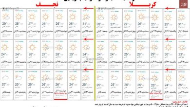 پیش بینی وضعیت آب و هوا در نجف و کربلا در ایام اربعین 95 به زائران اربعین برسانید تا خودشان…